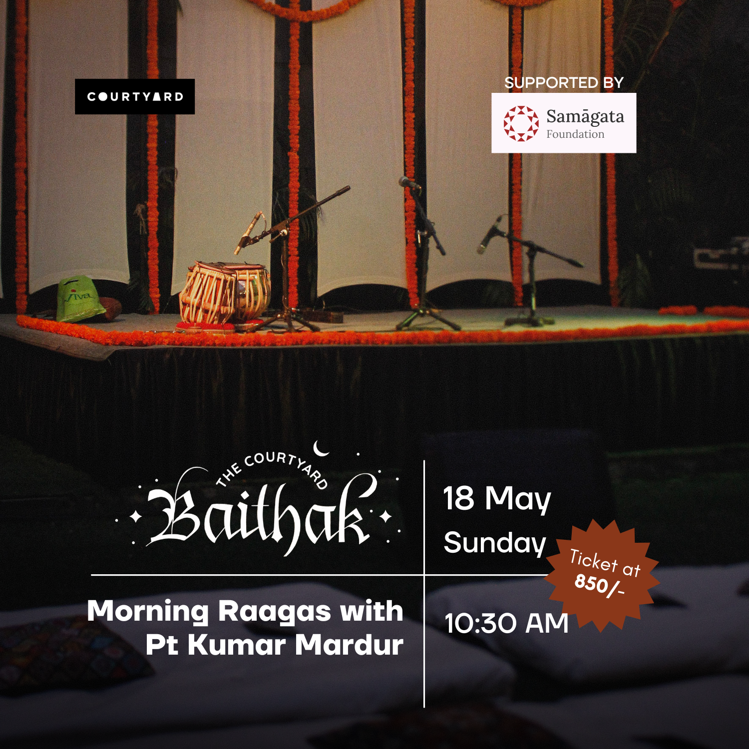 The Courtyard Baithak series is curated by tabla wizard and prodigy Trilochan Kampli, who with his uncompromising standards in music, evokes the best from every artist that he invites to perform. We are bringing musicians and audiences together on a sublime musical journey.Exclusive gatherings, quiet strains of exquisite music, and dedicated artists across selected genres – The Courtyard Baithak series promises a true classical musical experience.
